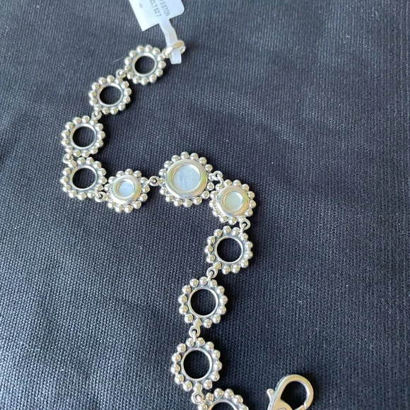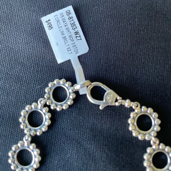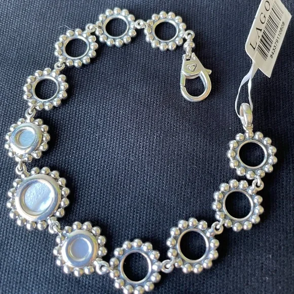 LAGOS Sterling silver Maya White Mother of Pearl.NEW WITH TAGS(NWT)Absolutely Stunning PieceDetails :Sterling Silver & Maya White Mother of Pearl.Hinge Clasp.7.5 Total length.LAGOS / 925Hallmarks.Sterling Silver Maya White Mother of Pearl Three Stone Circle Link Bracelet
