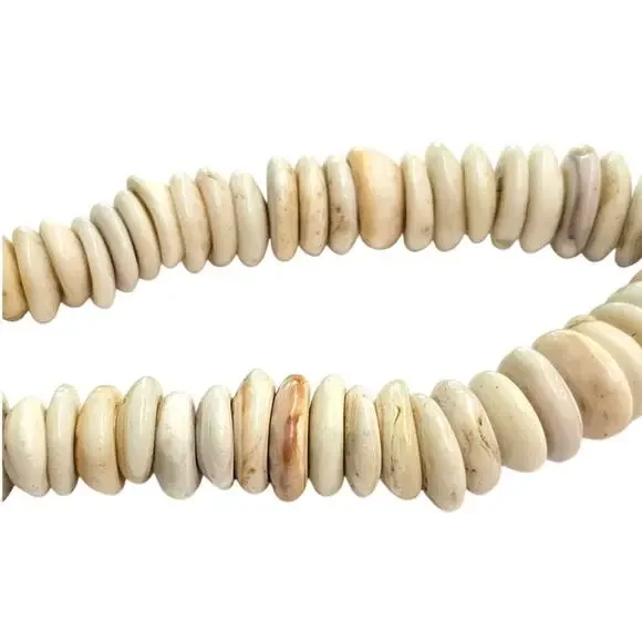Vintage Hawaiian Puka Shell Necklace - Heirloom Quality, Large SizeThis heirloom-quality vintage Hawaiian puka shell necklace, dating to the circa 1970s, is notably larger and more substantial than most. Each natural, sun-colored puka shell has been carefully selected, showcasing a beautiful range of creamy white and subtle earth tones. The consistent sizing and natural holes of these genuine shells highlight the meticulous craftsmanship involved in assembling such a robust piece. Puka necklaces of this substantial quality were often cherished and passed down through generations, embodying the spirit of the islands. This is a perfect statement piece for a relaxed, natural aesthetic.This necklace measures approximately 17 inches long. The shells range from about 8 mm to 15.5 mm, and the necklace weighs approximately 102.15 grams.