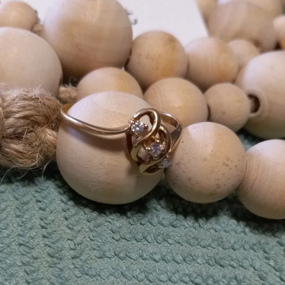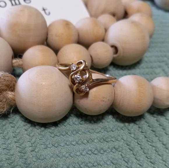 This is a custom made 10K yellow gold ring.It had 3 round diamonds and beautiful gold detailing. It is a size 11 and has a JA stamp on the inside of the band. It is in wonderful...