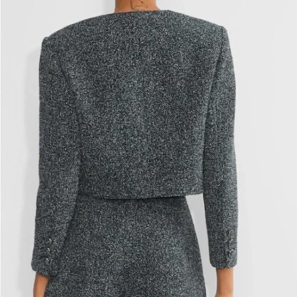 This is a button-up jacket with shoulder pads and a classic fit. It´s expertly tailored from soft, textural tweed that´s made with recycled polyester.FeaturesLinedCupro liningShoulder padsButton closure Recycled materials have a lower environmental impact than their virgin alternativesMaterials & CareContent: 55% cotton, 45% polyester; Lining: 100% cuproCare: Machine washImported Fit: Classic — An easy fit with a little roomLength: Waist — Intended to hit around the waistA size 2 will fit someone who typically wears a XS or S in other Aritzia clothing (depending on body shape and fit preference)BUST33 INWAIST25 INHIPS35 IN