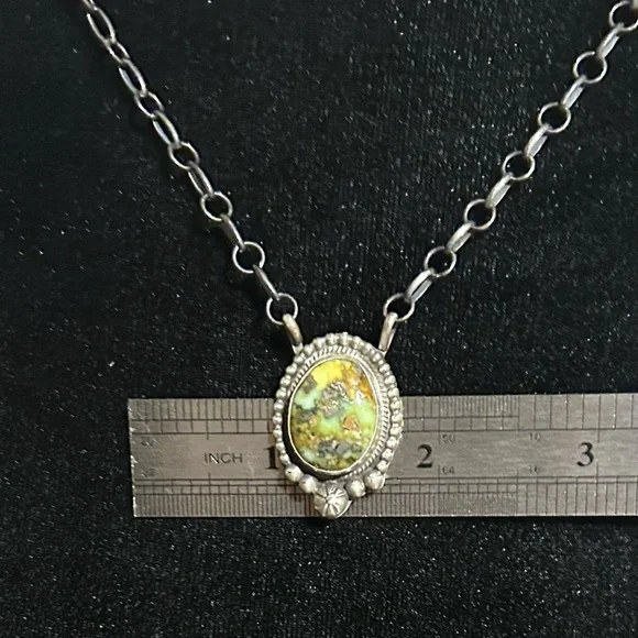 NWT Navajo Handmade Eli Skeets Necklace$295Palomino Variscite ‘Turquoise’ and Sterling SilverPalomino is a rare and distinctive variscite variety that is mined from a small mine in Nevada. Approximately 19-19.5” including stone. I tried to show the other dimensions in the photos.✨✨✨✨✨Everything comes from my home/closet or my daughters. I do Reposh if something doesn’t work for me, but I don’t thrift to flip.We are a smoke free, pet friendly home.♻️I will reuse packaging in order to be more Earth friendly♻️✨✨✨✨✨
