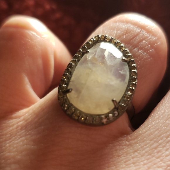 *** SALE ***GORGEOUS ADORNIA FINE MOONSTONE & DIAMOND ROSE CUT HALO RING .40 CTWSIZE 7FULL DESCRIPTION IN PHOTOS.BRAND NEW, ONLY WORN FOR PHOTO.