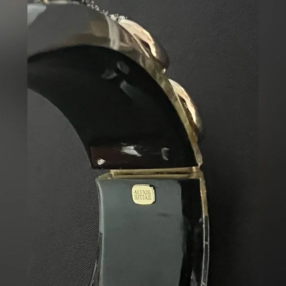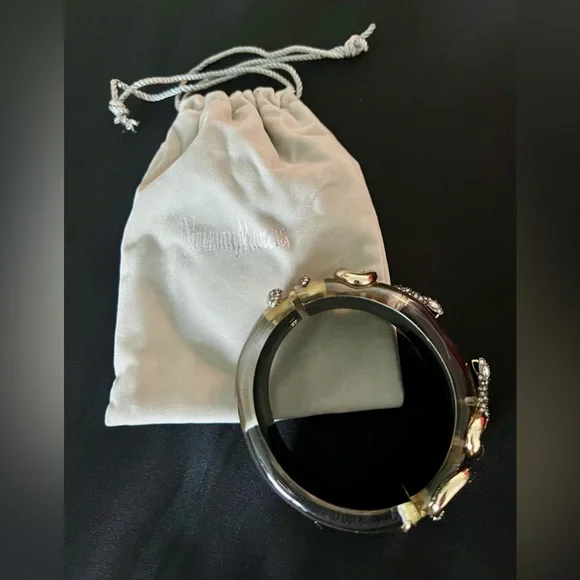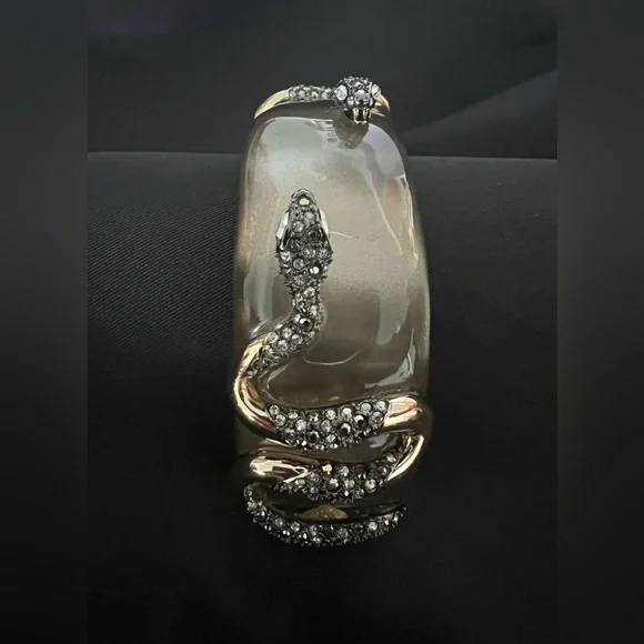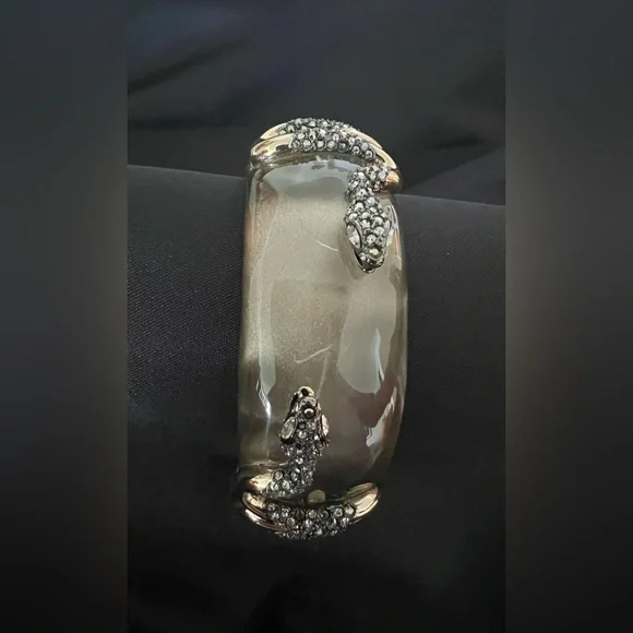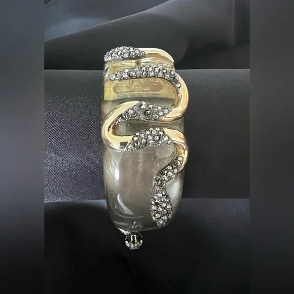An outstanding example of Alexis Bittar artistry. Double snakes, embellished to add texture and sparkle on top of the lucite. Well concealed hinge provides easy on and off. Never...