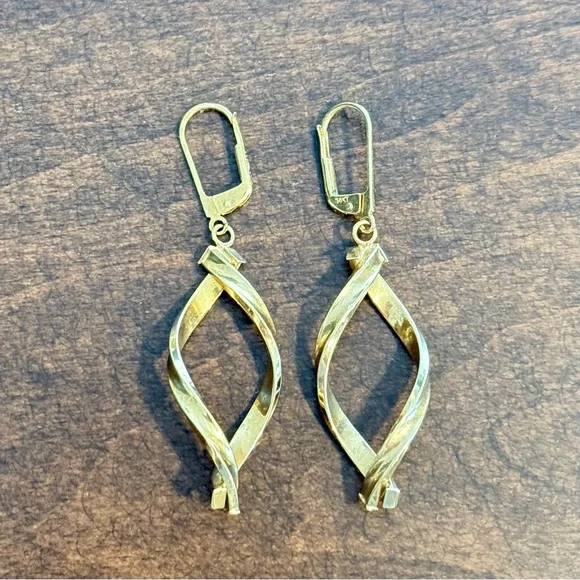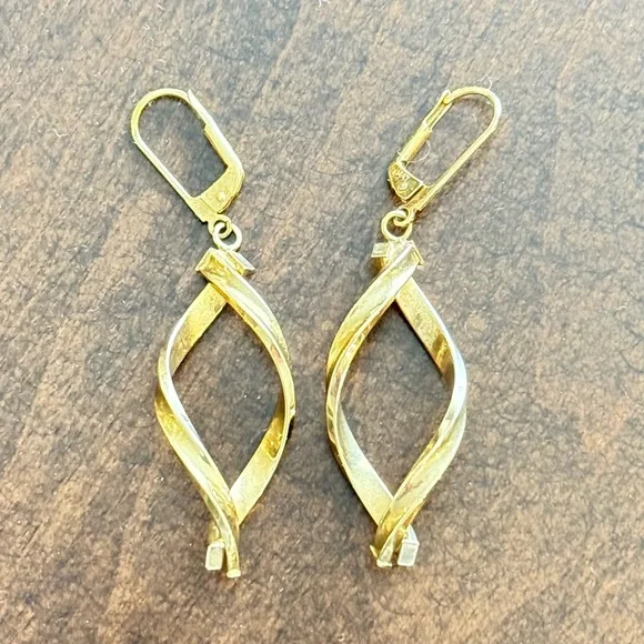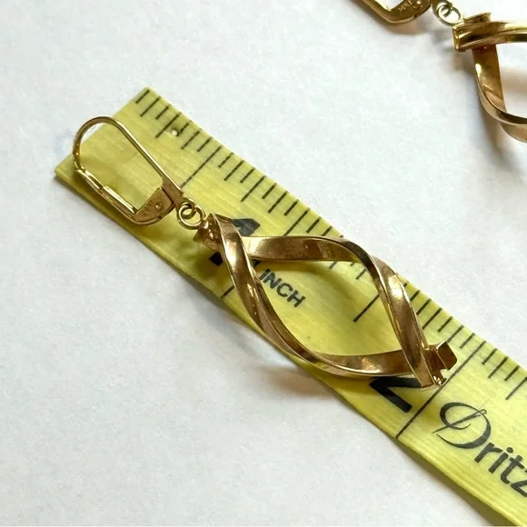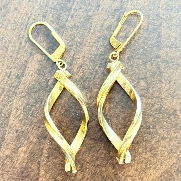 The Royal Chain Inc 14k Yellow Gold Spiral Swirl Earrings are a vintage pair of dangle/drop earrings with a leverback closure. Made by the reputable brand Royal Chain Inc, these...
