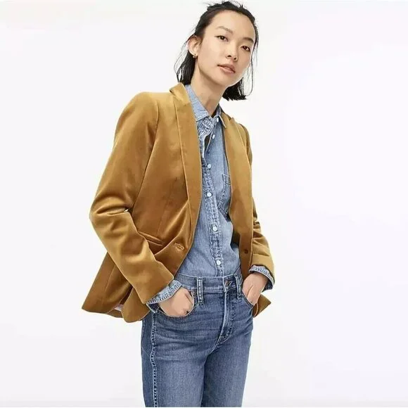 NWT J.Crew Petite Parke Blazer in Golden Brandy Cotton Velvet Jacket 4P