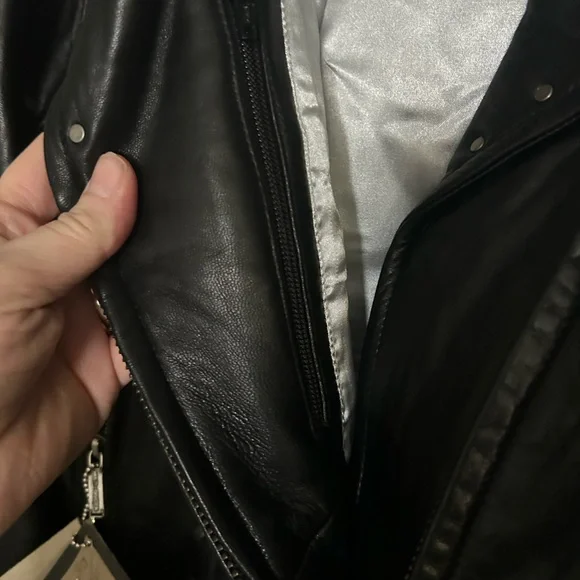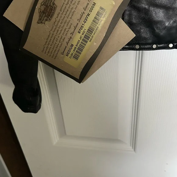 Elevate your style with this Harley-Davidson black leather jacket. Perfect for a bold, edgy look.Super soft leather, silver studded embellishmentsInterior pockets Logo on back Nonsmoking home