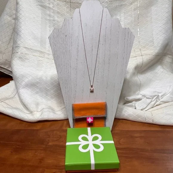 NWT no price. Estate piece never worn. ---Pendant is 14K Rose Gold over silver.1/10CTTW diamonds. Pendant is approximately 1/2 inch x 1/4 inch. Stamped 925 SUN.---Chain is...