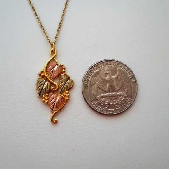 Black Hills 10K Yellow Rose Green Gold Leaf Grape Pendant 1/20 12K GF Necklace
