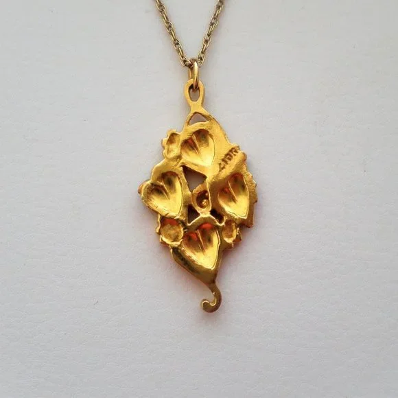 Sign up forusing my code TRAVELINGFROG to get $10 off your first purchase!Beautiful Vintage Designer Black Hills Gold solid 10K Yellow Rose Pink Green Gold Leaf Grape Pendant...