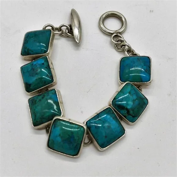 Designer Mexico Taxco Citlal Castillo Sterling Silver Turquoise Bracelet 43 g.