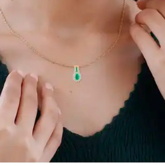 Gold plated 925 sterling silver emerald and white zircon halo pendant necklace