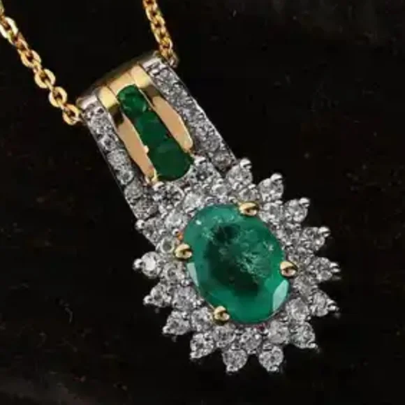 new users promo code TRAVELINGFROG gets you $10 off your first purchaseZambian emerald vermiel gold plated zircon halo or sunburst design. this looks so rich! if I saw this at...