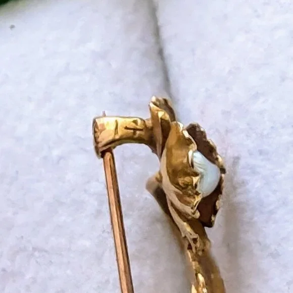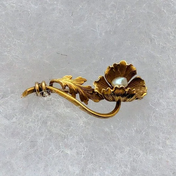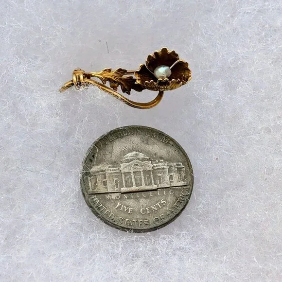 Sign up forusing my code TRAVELINGFROG to get $10 off your first purchase!Beautiful Antique Victorian solid 14K Yellow Gold White Seed Pearl Flower C Clasp Brooch Pin about 2...