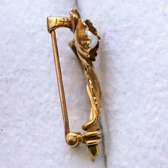 Sign up forusing my code TRAVELINGFROG to get $10 off your first purchase!Beautiful Antique Victorian solid 14K Yellow Gold White Seed Pearl Flower C Clasp Brooch Pin about 2 grams (marked "14" with K faded" and acid tested). It is in great antique pre-owned condition and measures about 25mm in length by 11mm (widest).