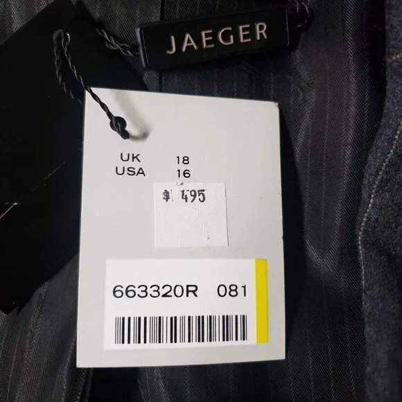 Jaeger Designer 100% Wool Jacket Blazer Pinstripe Gray NWT size 16