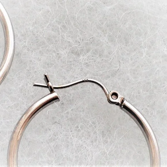 Beautiful Vintage Solid 14K White Gold Hoop Pierced Earrings 14kt