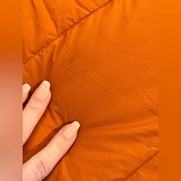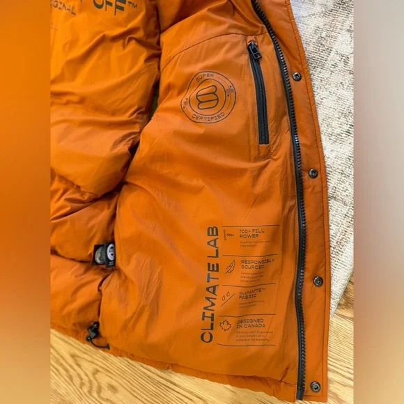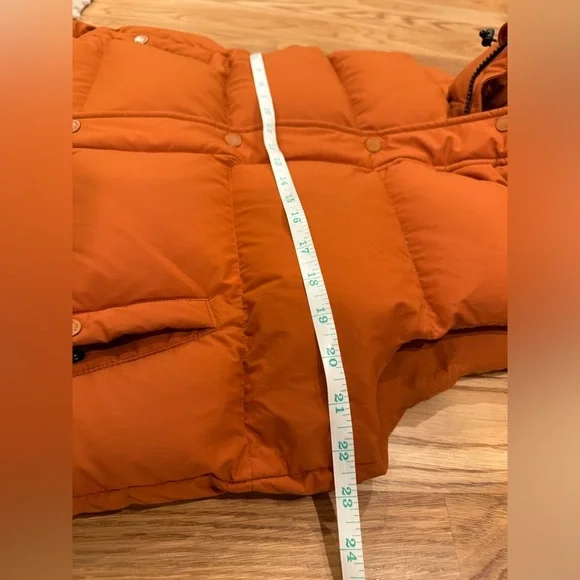 Stylish Aritzia puffer jacket. Vibrant orange color. Features a hood and front pockets. Perfect for cold weather.Aritzia Super Puff ShortyExcellent Condition (with tiny marks on back that are nearly impossible to see - see last 2 images)Size: L | AritziaAritzia Super Puff Shorty JacketWomen´s Aritzia Super Puff Shorty JacketSize: LargeColor: Rich Copper- excellent condition, worn a few times- no flaws- smoke & odor free home!100% responsibly sourced goose down - certified to the Responsible Down StandardEngineered to deliver warmth to -20°C /-4°F700+ fill-power goose down