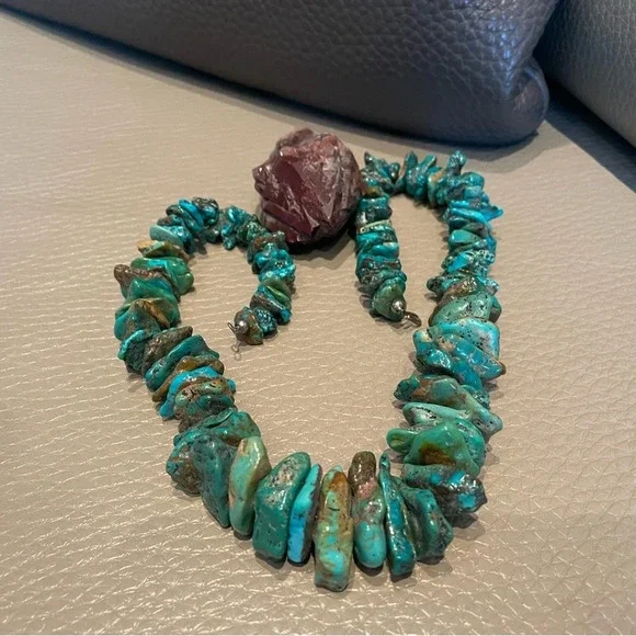 A stunning VintageTurquoise Treasure Heavy NecklaceJust over 23”Largest stone is just over 1”
