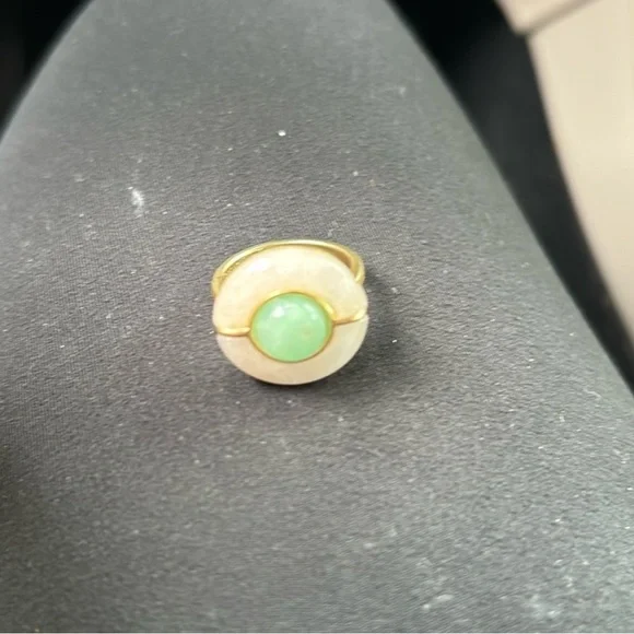 This elegant ring features a stunning green stone set in a gold band. Perfect for adding a touch of sophistication to any outfit.