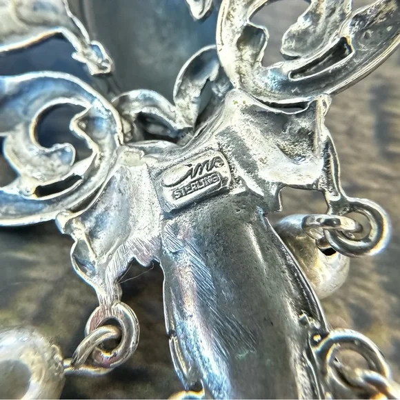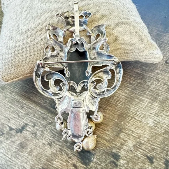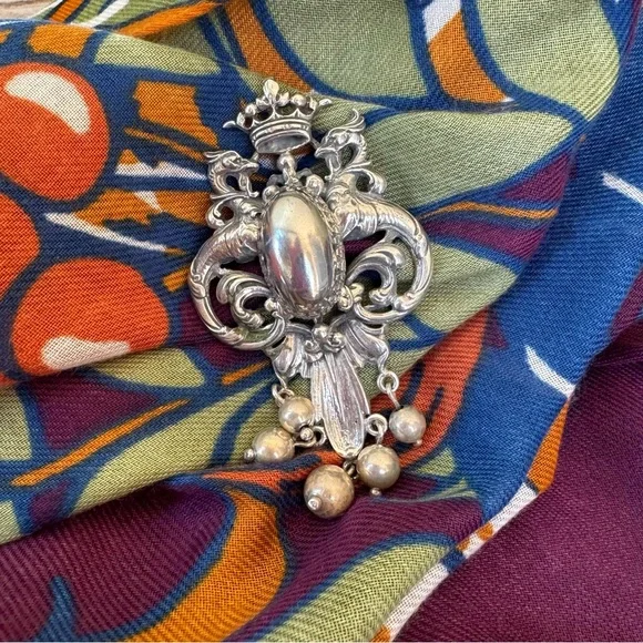 Cini Sterling Silver Brooch, Art Nouveau Griffen Dragon & Crown Dangle Pendant Pin, Guglielmo Cini Jewelry 1940s Vintage Designer.3-1/2” longCan be worn as a brooch, or hang on...