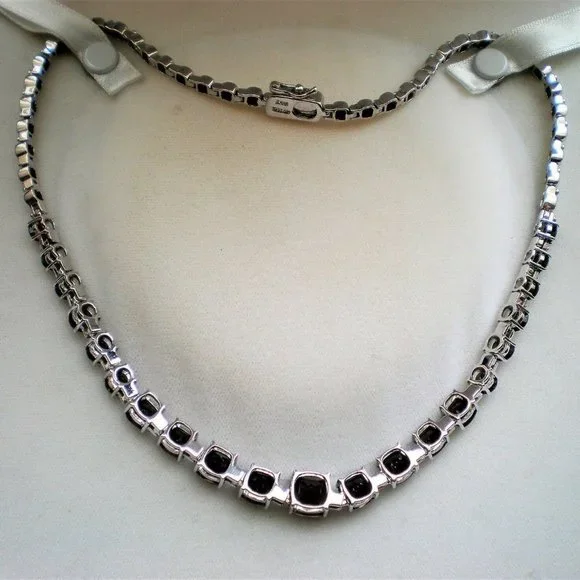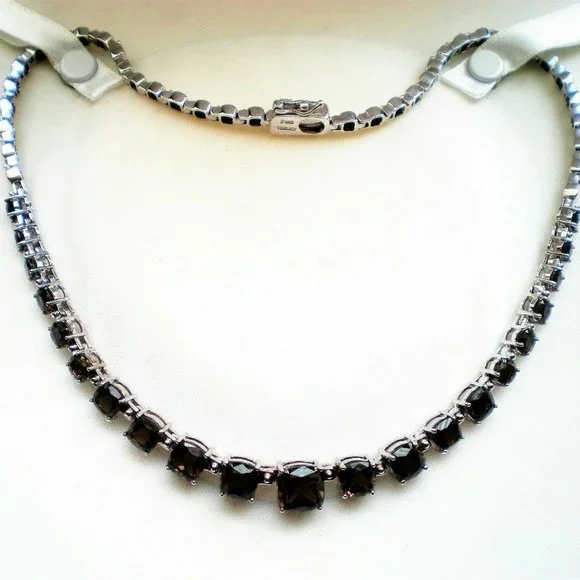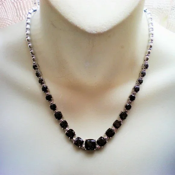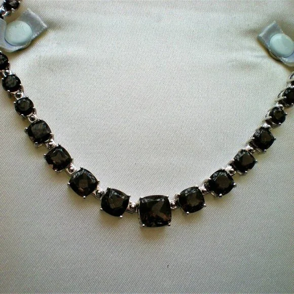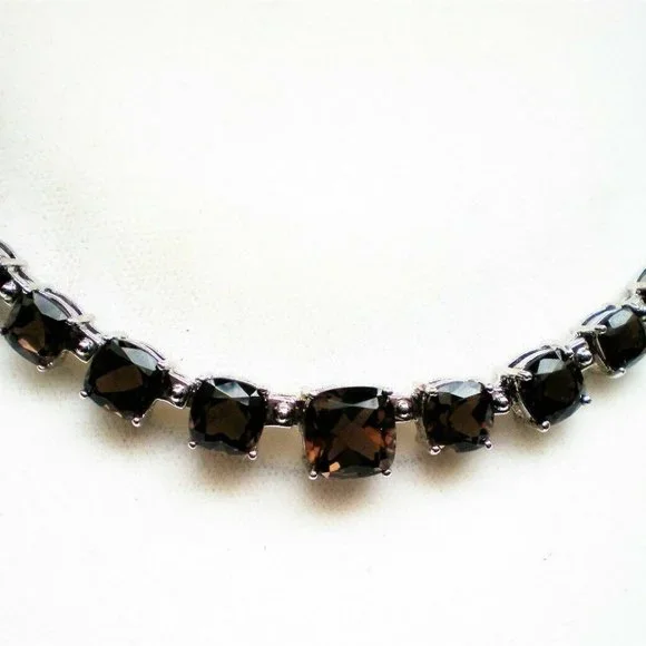 Sign up forusing my code TRAVELINGFROG to get $10 off your first purchase!Gorgeous Vintage Designer solid Sterling Silver 925 Genuine Faceted Smokey Topaz Cluster Necklace Chain Collier (marked "925 with Designer mark THAILAND" and acid tested). It is about 18" in length (with clasp). Width varies from about 4mm near both ends to about 9.75mm (center). Smokey Topaz stones vary in shape and size from about 4.75mm to about 9.75mm by 9.75mm. This unique Necklace Chain Collier weighs approximately 46.8 grams and is in great MINT vintage pre-owned condition.
