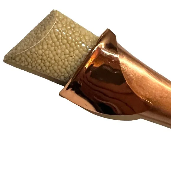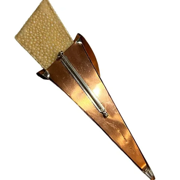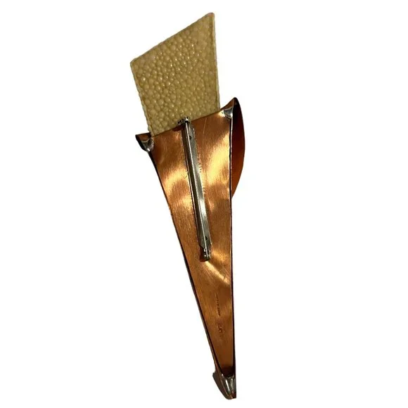 Vintage Fabrice large copper torch brooch.Top is shagreen textured resin.Approx 5 1/2" long.Made in France.Very good vintage condition, metal has light scratches.