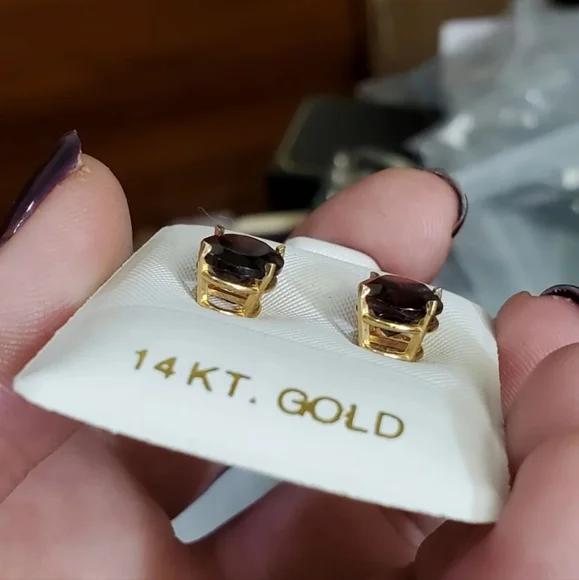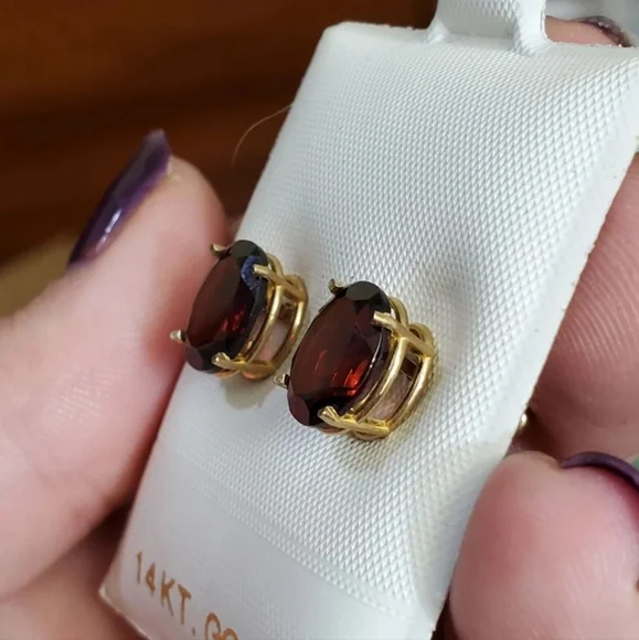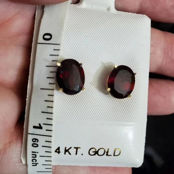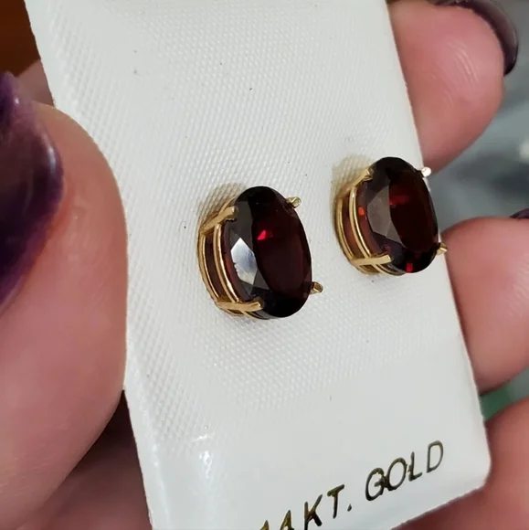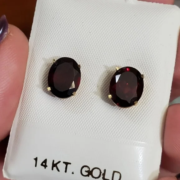 New. 14k garnet stud earrings! Each garnet measures 10mm× 8mm so approximately 2.5 carats EACH= 5 carat total weight.Stamped 14k on the studs. Genuine garnets tested with the gem tester shown in pictures. Backs are not gold but are great for bigger earrings to keep them upright/straight. Love these! See my other listings for sterling silver, solid 10k, 10kt, 417 ,585, solid 14k, 14kt solid 18k, 18kt, diamonds, sapphire, emerald, garnet, jade, amethyst, citrine, ruby, topaz, other precious stones and other jewelry Key words: ´s, Jared, Zales, engagement, anniversary, birthday, christmas
