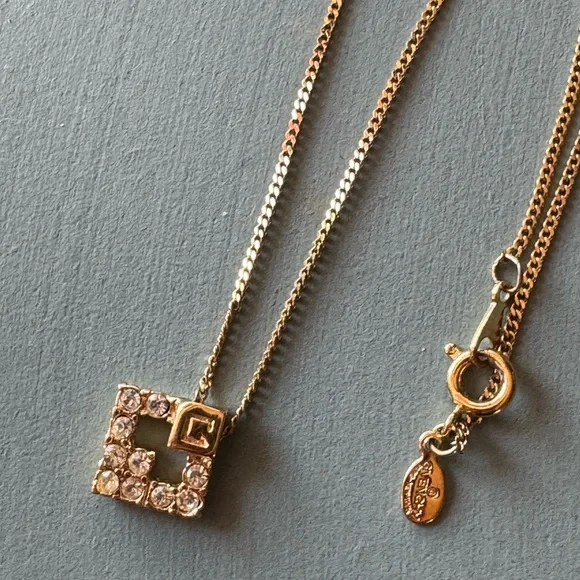 Givenchy Vintage Diamond Rhinestone G Logo NecklaceA beautiful vintage 80-90’s piece from Givenchy. Featuring a gold-plated Diamond Rhinestone G Logo. Current necklaces average...