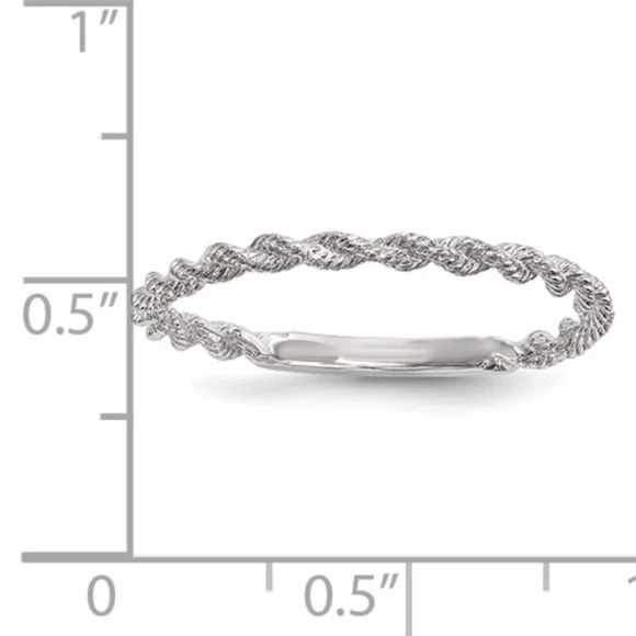 14k White Gold Polished Twisted Rope RingItem Size: 7.5Metal: 14k White GoldBand Width:1.5 mmThickness:>2 mm