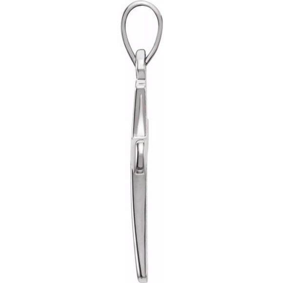 14K White 19.3x11.4 mm Cross PendantSpecificationsWeight: (0.89 grams)Approx. Height:1.35 mmMaterial:GoldApprox. Length:23.2 mmApprox. Width:11.4 mmPlating Type:Rhodium-PlatedSurface Finish:PolishedPendant Bail Type:PinchPendant Jump Ring ID:1.1 mmChain Passage Dimensions:3.2x2 mmMedals Size:19.3 x 11.4 mmPendant Dimensions:19.3x11.4 mm