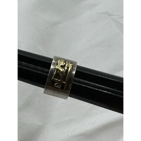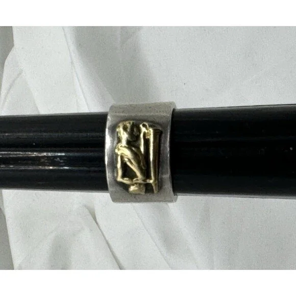 Ilias Lalaounis Sterling & 21k Yellow Gold Emblem Band Pinky Ring Size 4.5-5