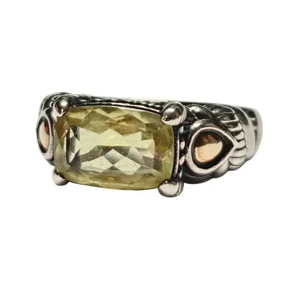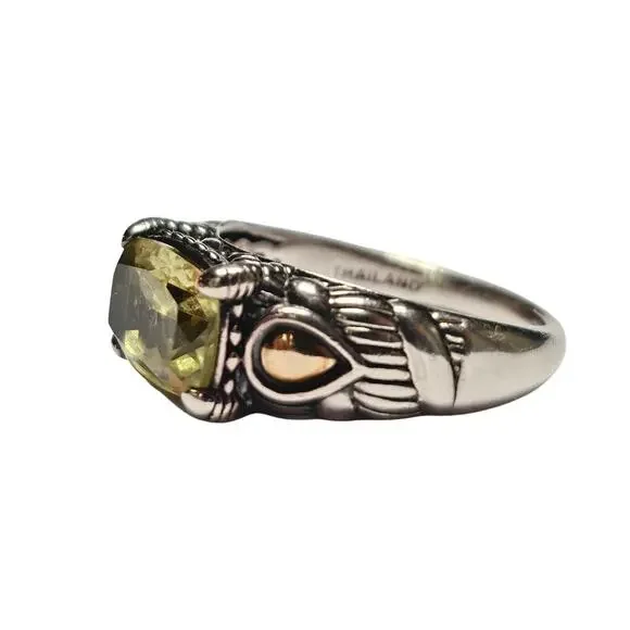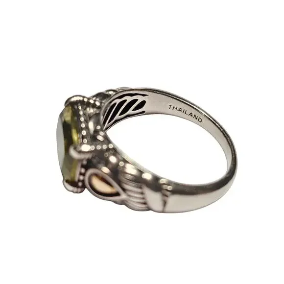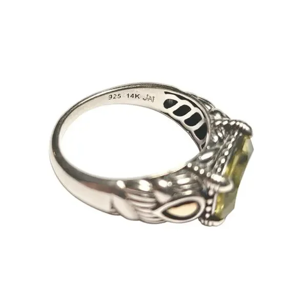 JAI Sterling & 14K Green Quartz Ring, Size 11.25
