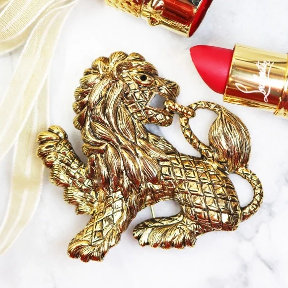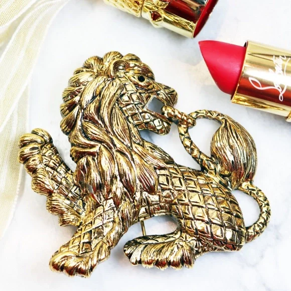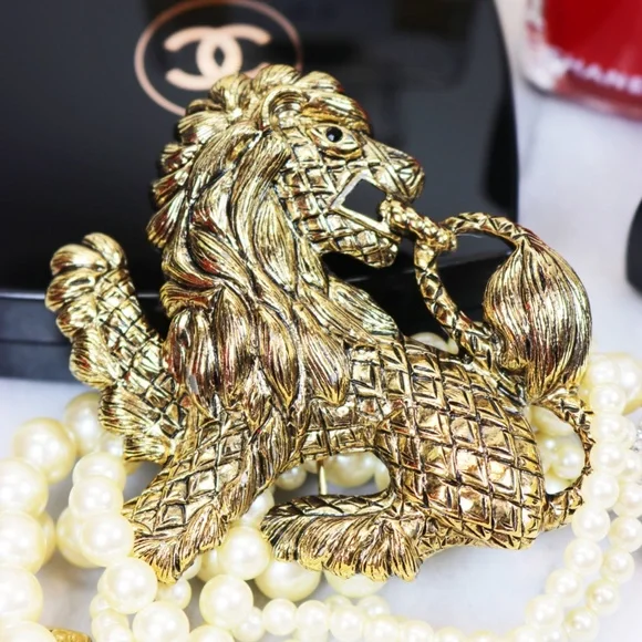 This stunning piece features a fierce some, quilted lion with gold plating finished off with a black spinel eye. This piece measures 2.5"L x 2.75"W, has a perfect roll over clasp and is in excellent vintage condition and is signed Joan Rivers. It would make an excellent gift or the perfect addition to your own jewelry collection. All reasonable offers accepted. Please take a look at the other Joan Rivers Classics Collection jewelry available in our closet and boutique.The lion is a worn as a statement implying courage, resilience and being brave. Designers, including , have embraced this concept, and symbol, for decades as seen in their jewelry collections over the years. This piece represents the strength and courage of the lion...a conversational, bold and confident statement in these times!