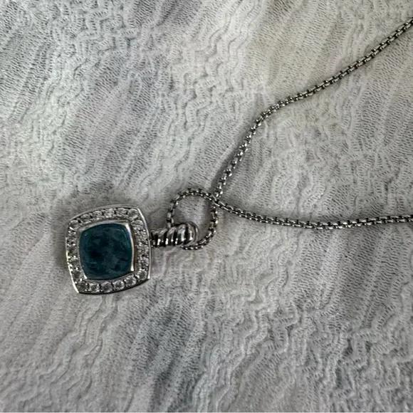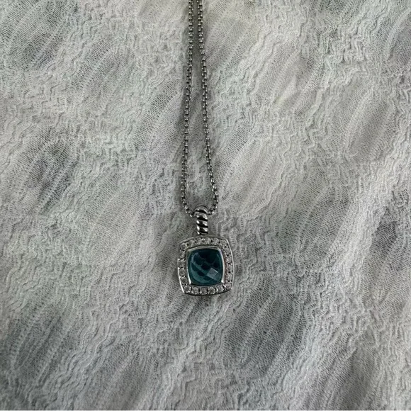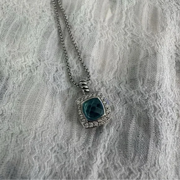 Pavé Bezel Pendant Necklace Sterling Silver with Hampton Blue Topaz and Diamonds
