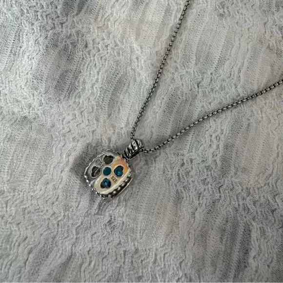 Sterling silverBlack onyx, 2.50 total carat weightStone, SmePavé set diamonds, 0.20 total carat weight Adustatie length, 17-18nPendant, 12.1mChain, 1.7mmLatnter clasp