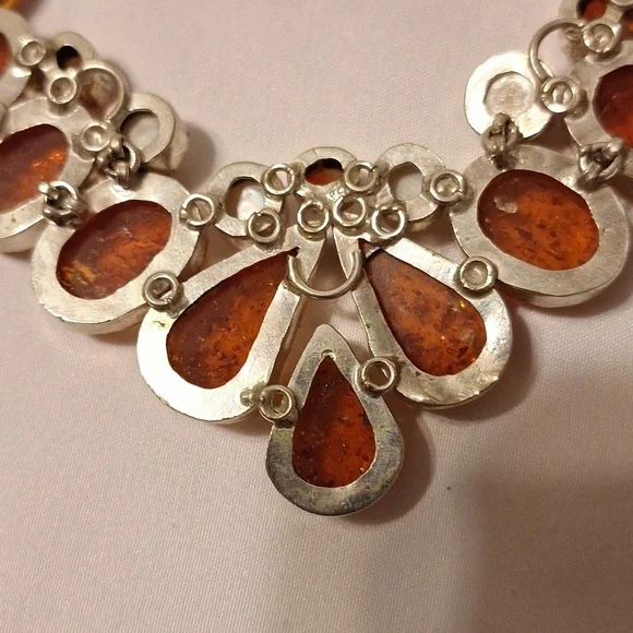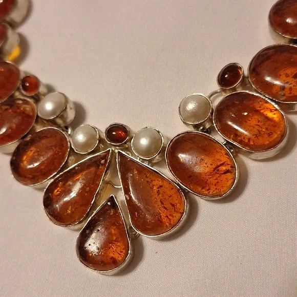 Copal Amber and Cultured Pearl Statement necklace.Set in Sterling silver.no hallmark. Tested.Questions? Leave a comment below!