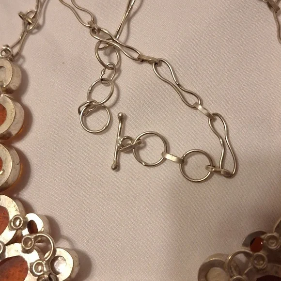 Copal Amber and cultured pearl Silver statement necklace Toggle clasp 22"