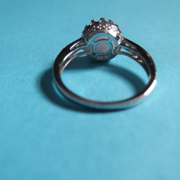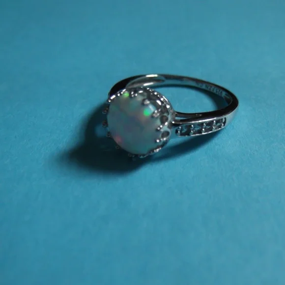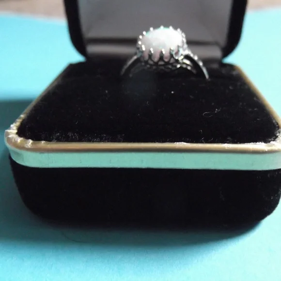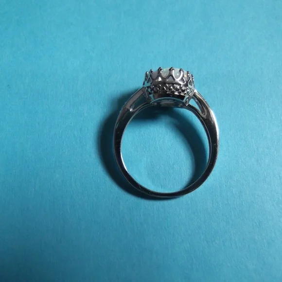 Beautiful White Opal with White Sapphires Ring.New without tags.This ring is classy and understated.This elegant opal catches the light and the colors show...
