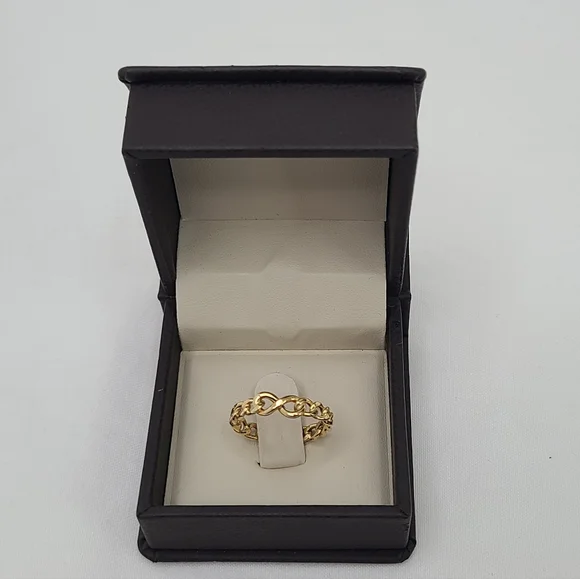 14K Yellow Gold YG Cuban Chain Link Band Ring with Infinity Symbol Stacking Ring Size 7 US. 0.61g* All packaging and shipping is video recorded for security purposes *