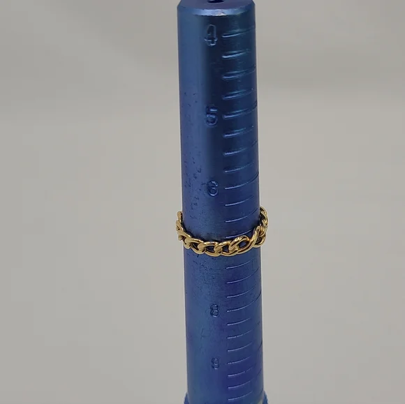14K Gold Cuban Chain Link Band Ring w/ Infinity Symbol Stacking Ring Size 7 US