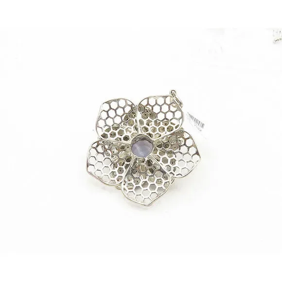 925 Sterling Silver Vintage Blue Agate & Pink Topaz Flower Pendant PT14857