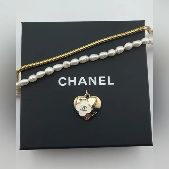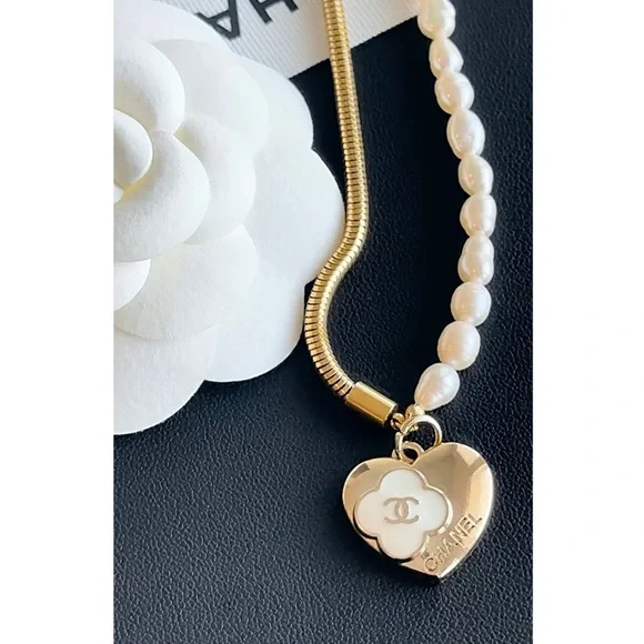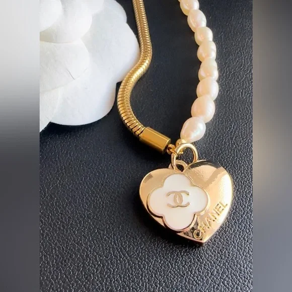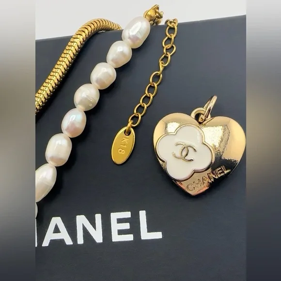 AUTHENTIC HEART GOLD TONE ZIPPER PULL PENDANT AND UNBRANDED PEARL NECKLACE Excellent Like New Condition100% AUTHENTIC Camellia flower detail Stamped Half snake chain half genuine pearls 18” chain High luster high quality genuine baroque pearls 18KT over stainless steel unbranded rope chainNon tarnish high quality chain Lobster clasp Listing is for charm and chain only NOT PART OF ’S BOUTIQUE JEWELRY LINEZIPPER PULLS AND BUTTONS ARE MADE FOR BAGS AND CLOTHINGI am not affiliated and/or associated with any of the brands, brand owners, or trademarks. All logos and trademarks remain the sole property of the brand