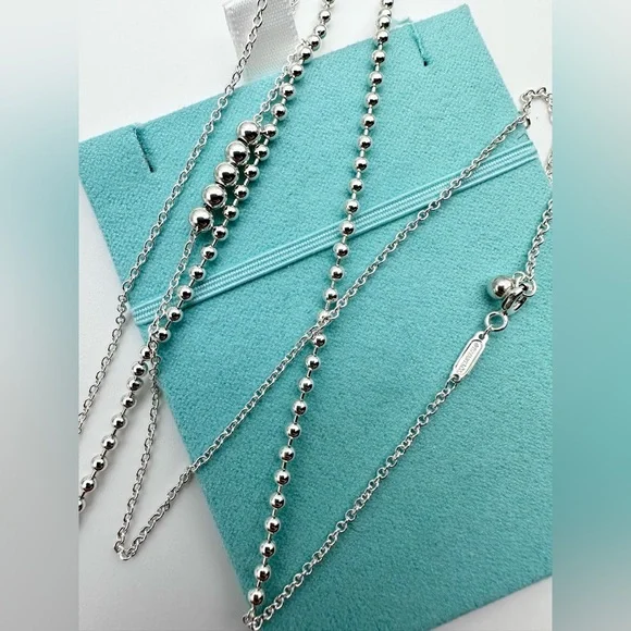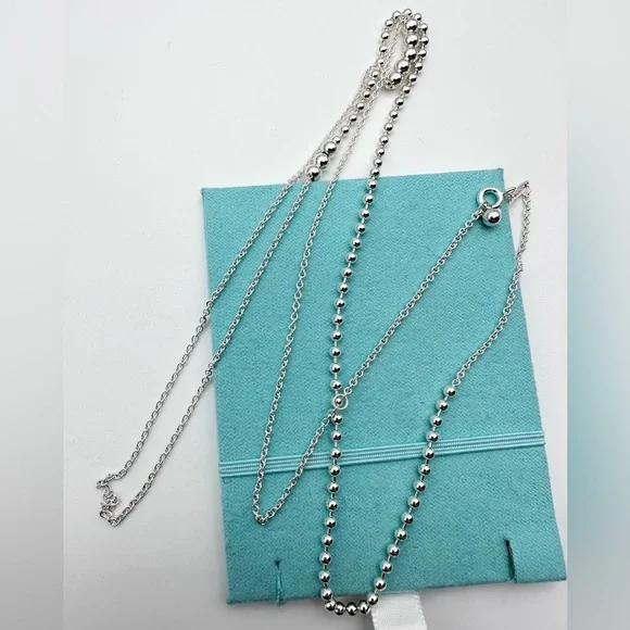 Tiffany and co new never used 28”-30” adjustable mixed bead chain sterling silver. Perfect for your everyday look! Comes with a dust bag