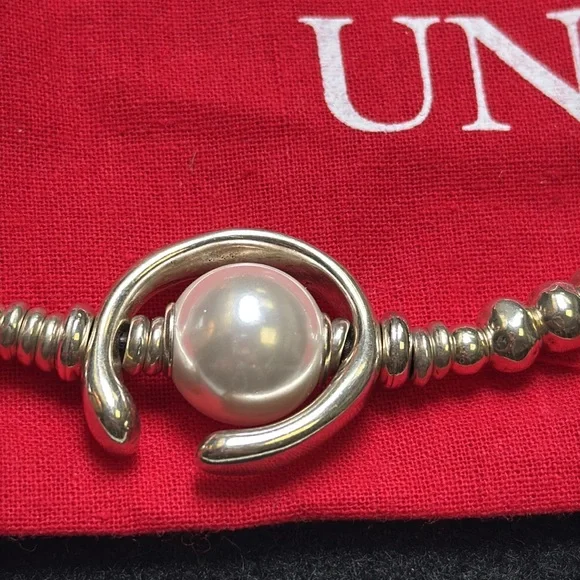 UNOde50 Another Round OH OH OH...! Heavy silver plated choker Big pearl+Pouch