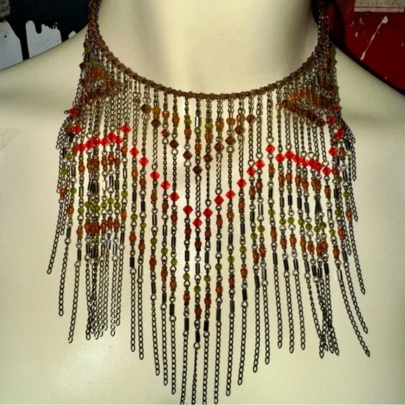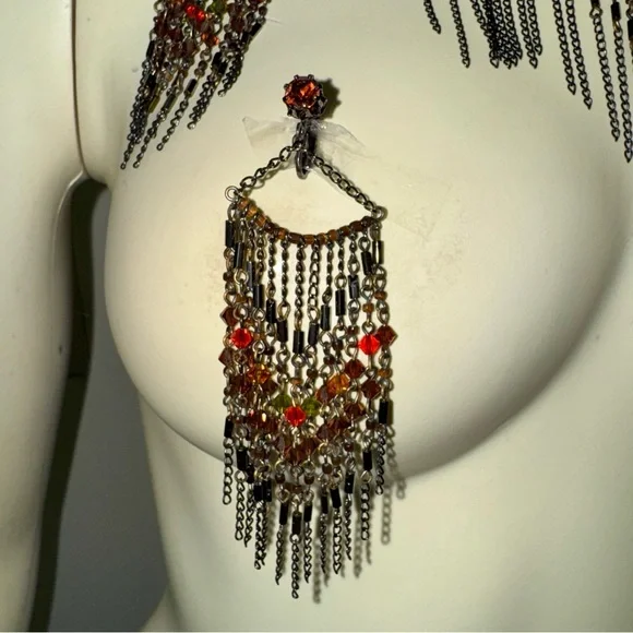 Erickson Beamon Celeb designer tassels&multicolor crystals necklace/Earrings set