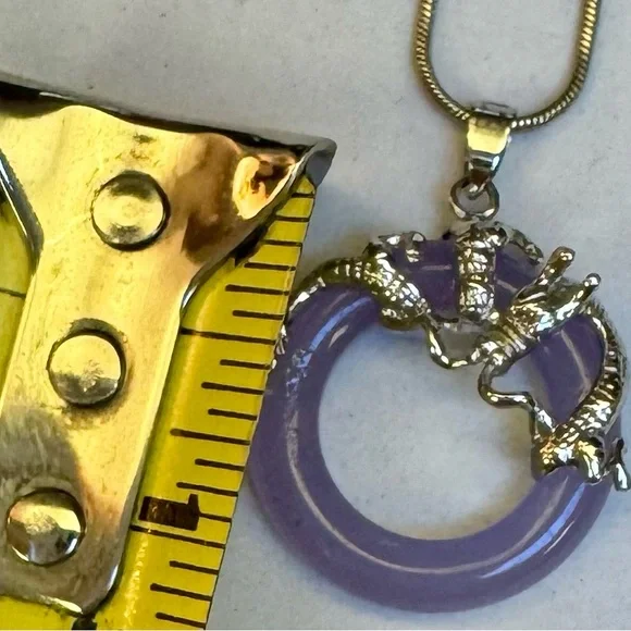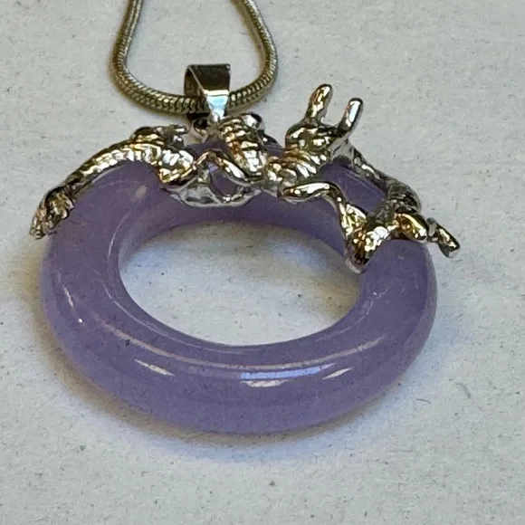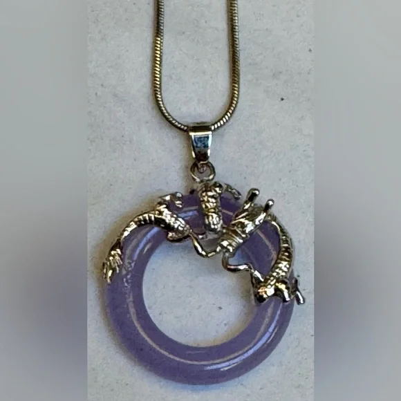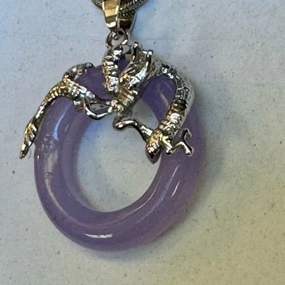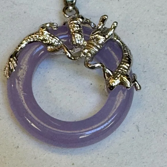 18 KGHE Year of The Dragon wrapped Genuine Lavender Jade Circle pendant