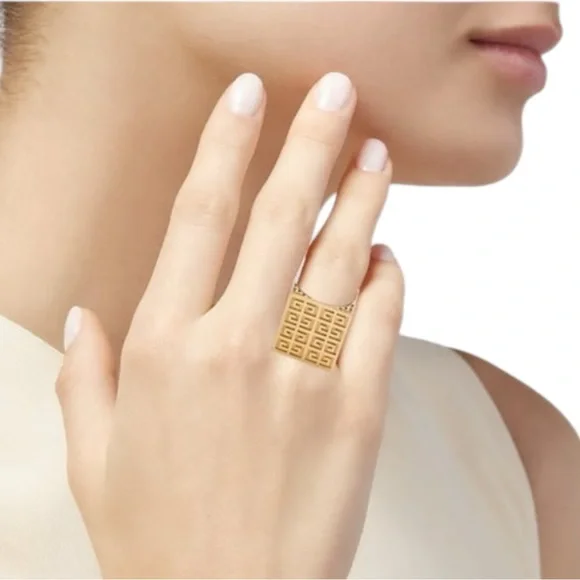Givenchy, Paris G Square Ring Pendant.Metal Type: Gold-Tone MetalMarks: Designer Signature Size 6Made in Italy Signature: GivenchyTotal Item Weight (g): 20.1Note: This item has...