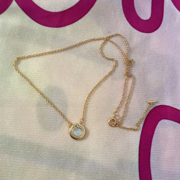 18K rose gold with pink opal and round brilliant-cut diamondsRoundWith diamondsAdjustable, 16-18 inch chainComes with box