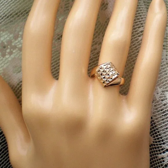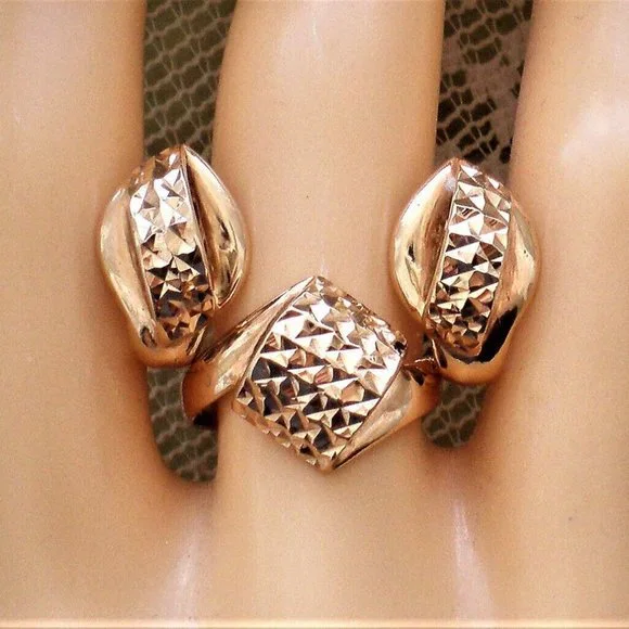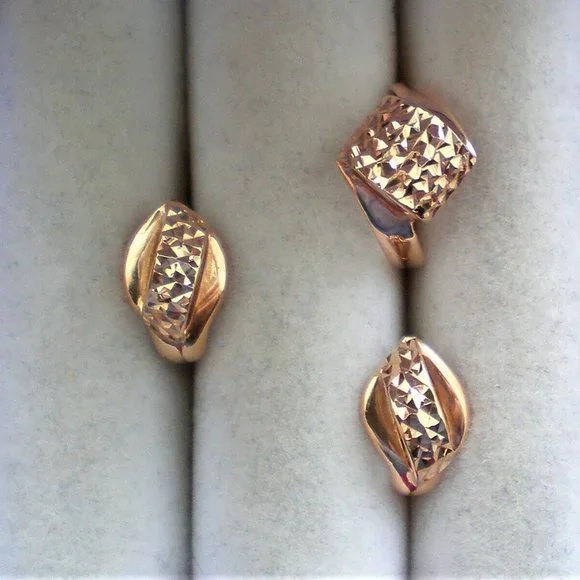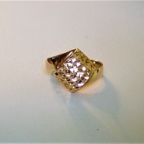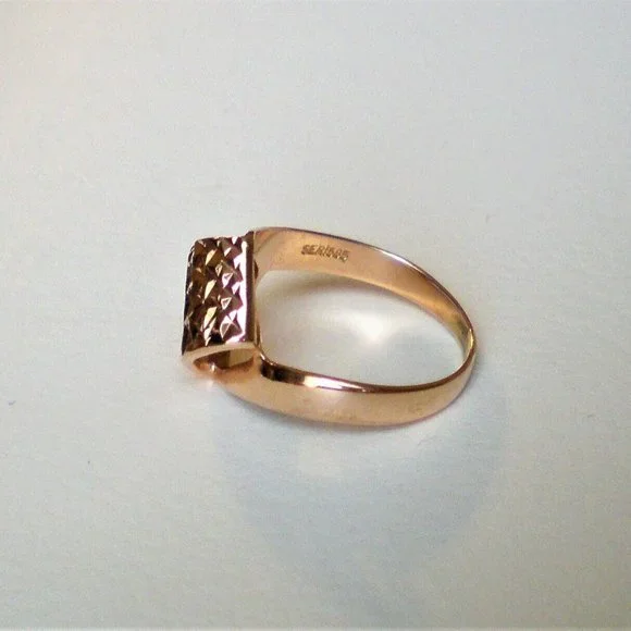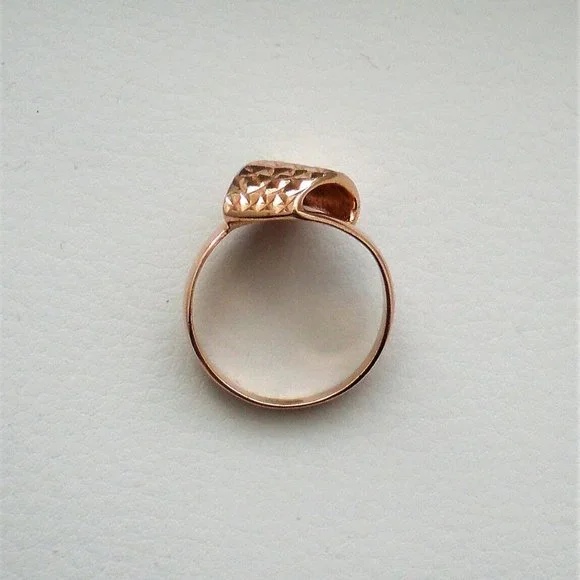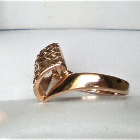 Sign up forusing my code TRAVELINGFROG to get $10 off your first purchase!PLEASE SEE THE MATCHING EARRINGS IN ANOTHER LISTING! Beautiful Designer Seri solid 14K 585 Rose Pink Gold Diamond Cut Bypass Design Ring about size 4-4.25 (marked "SERI585" and acid tested). Top of the ring is about 12mm in its widest, bottom is about 2mm i width. This ring weighs about 2.3 grams and is in great pre-owned condition. Great for little girl or young lady.