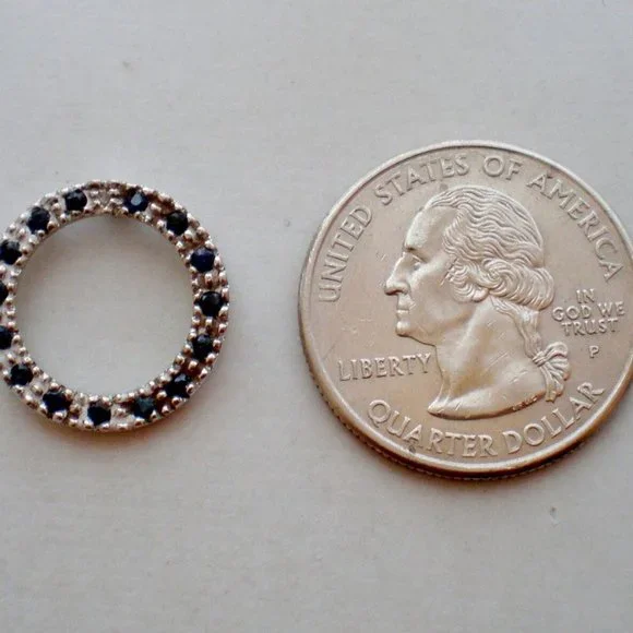 Sign up forusing my code TRAVELINGFROG to get $10 off your first purchase!Beautiful Vintage solid 10K White Gold (marked "10K" and acid tested) Genuine Blue Sapphire Circle Pendant Charm. It is about 11/16" in diameter and weighs 1.3 grams, 15 genuine Sapphires are about 1.25mm in diameter each. Pendant Charm is in great vintage pre-owned condition.